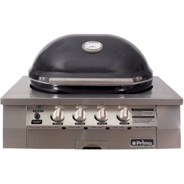 Primo Oval G420 36-Inch Ceramic 4-Burner Built-In Kamado Propane Gas Grill – G420H-P