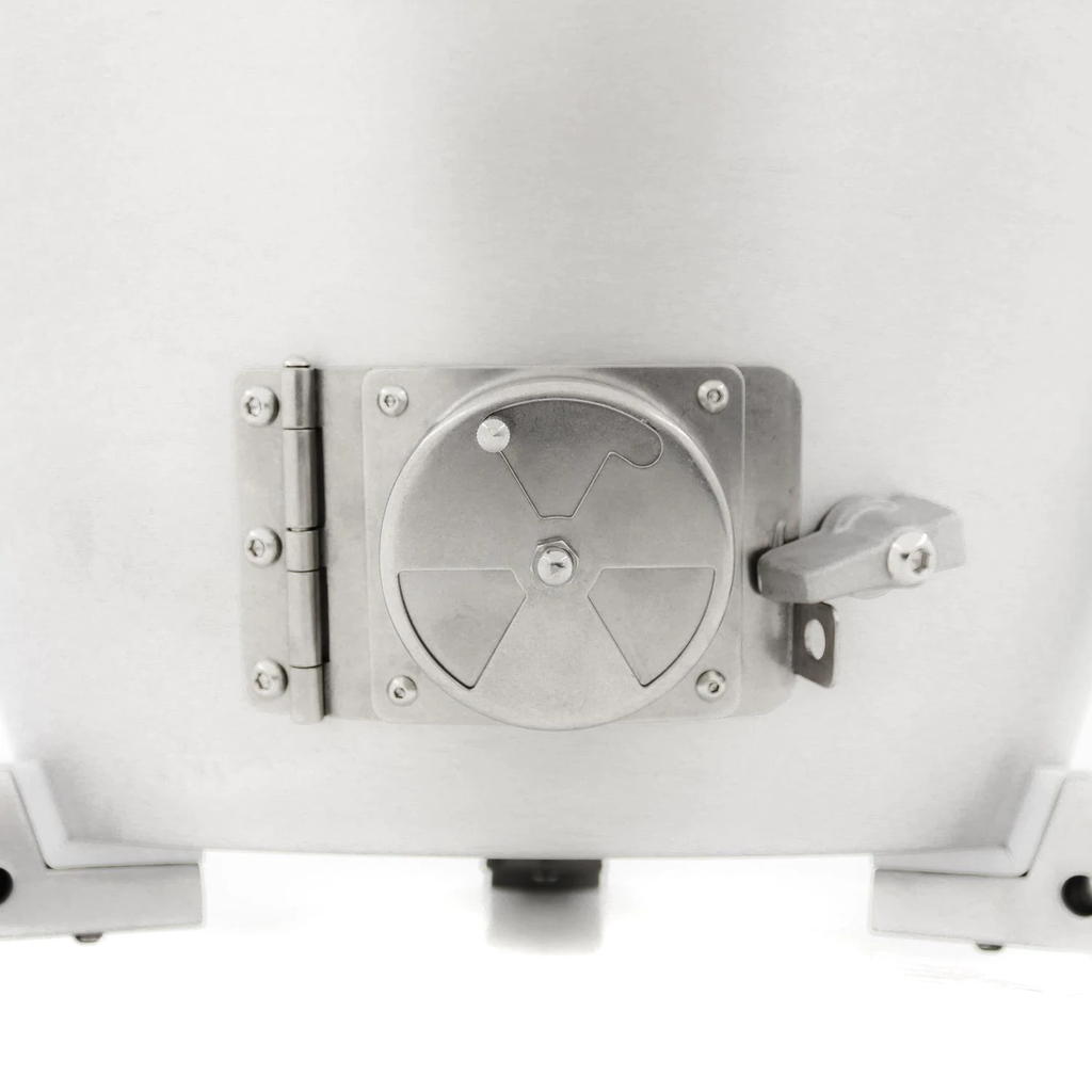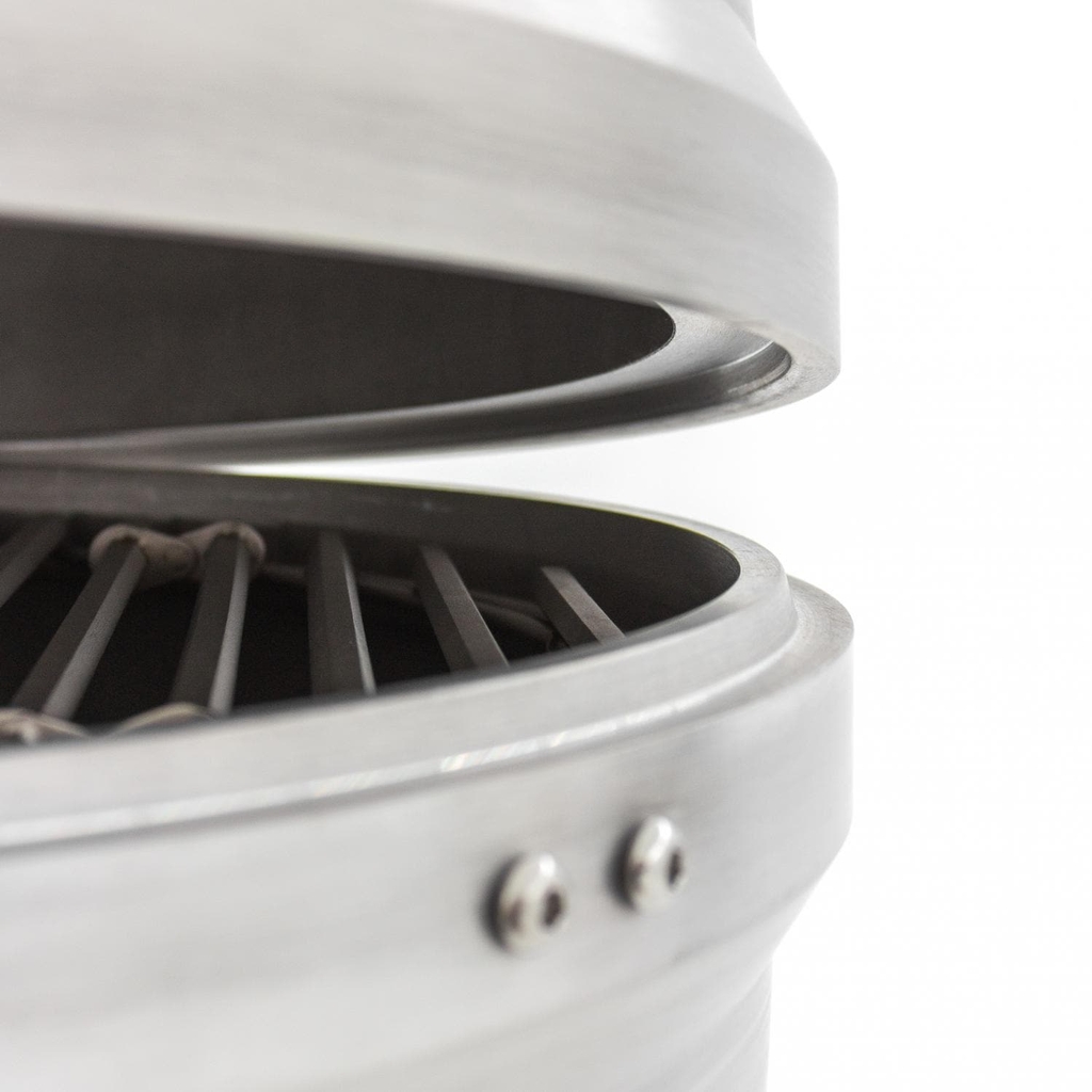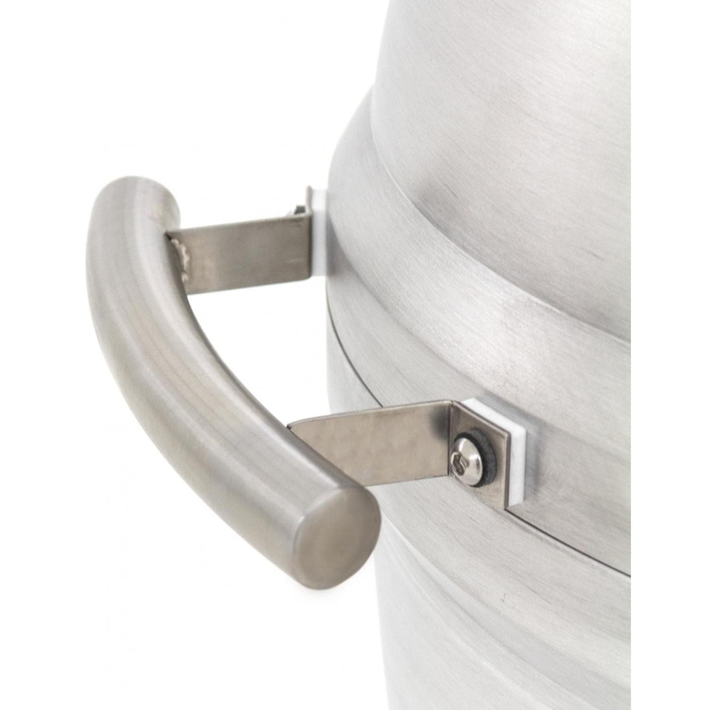 Made from one inch thick solid cast aluminum, the Blaze Kamado offers superior durability and outstanding temperature control. The non-porous grill body allows you to use any type of charcoal or wood, as well as any material for lighting the charcoal without worry of damaging or absorbing into the grill body. The heavy-duty 12mm hexagon, 304 stainless steel cooking grate retains heat and helps you achieve an excellent sear. The 20-inch diameter cooking grate is hinged on both sides so you can easily add wood or charcoal without completely removing the cooking surface. A mid-level 18-inch cooking grate is also included which allows you to cook closer to the fire, add a drip pan or a heat deflector for indirect cooking. If you cook food on the middle grate, you will need to use the included high heat gloves to handle the hot cooking grates. The lid hinge is made from 304 grade stainless steel and features a convenient lift assist for easy opening and closing. The Blaze Kamado grill also boasts an innovative lid seal that is superior to ceramic kamado-style grills. Instead of using a felt gasket, the cast aluminum Blaze Kamado utilizes a tongue and groove seal. This design eliminates the need to replace a damaged gasket and also provides an exceptional seal that prevents heat from escaping. The top exhaust vent is made from molded cast aluminum for precise heat control without the risk slipping out of position. The bottom of the firebox holds a removable stainless steel ash pan with handles for easy cleanup. A large temperature gauge with markings for smoking, roasting and searing temperatures is mounted in the lid, allowing you to easily monitor cooking temperatures. The stainless steel grill cart includes six casters so you can easily move the grill around on your patio or deck. Two stainless steel side shelves provide valuable workspace to your grilling area and four tool hooks for convenient hanging.