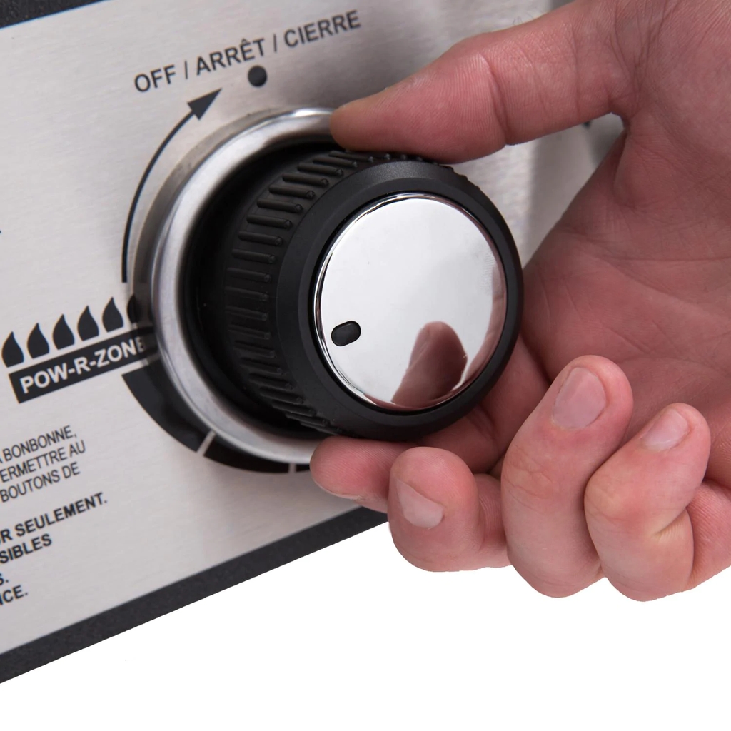 - Stainless steel burner delivers up to 15,000 BTUs of even heating
