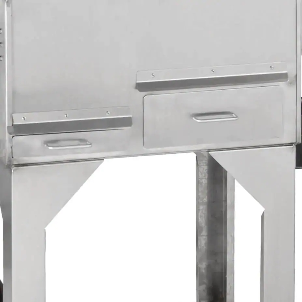 The Cookshack Fast Eddys 30-Inch Pellet Grill is constructed out of 304 and 402 grade stainless steel with a riveted assembly on the body. This Cookshack Fast Eddys Pellet Grill is a pellet grill and smoker all-in-one. It has 4 cooking zones maximizing your cooking potential. The cooking zones include a 10 x 18-inch direct cooking rack, an 18 x 18-inch indirect cooking rack, a 10 x 28-inch top rack and a 19 x 13 x 4-inch warming drawer for a total of 784 square inches of cooking area. The direct cooking area has a 304 grade stainless steel cooking grate while the cooking grate for the indirect cooking area is nickel plated. The Cookshack pellet grills are the only pellet grills on the market that uses charbroil technology offering the same great flavor as high end commercial grade charbroiler with high production and shorter temperature recovery time. Includes a front access ash drawer for easy ash removal and a warming drawer where you can keep your food warm or use as a cold smoker. It has a 22lb hopper capacity and a burn rate of 1. 2 to 2lbs per hour at 400 degrees Fahrenheit eliminating the need to constantly fill the hopper and tend the grill. It also features an electronically controlled temperature gauge with fully automated controller that eliminates large heat fluctuations that will dry out your food. This pellet grill comes with one side shelf, 4 casters and 40lbs of Cookshack Hickory pellets. All Cookshack smokers and pellet grills are proudly made in the USA.