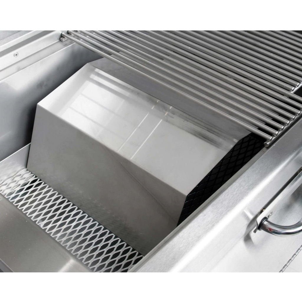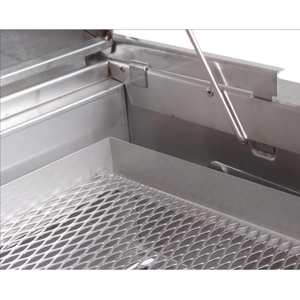 The Fire Magic 24 Inch Legacy Smoker Charcoal Grill features a 432 square inch cooking surface, all stainless steel construction, and a heavy-duty stainless smoker hood with precise analog thermometer. The smoker hood features adjustable air shutters for easy temperature control. The adjustable cooking surface and easy-access charcoal drawer make adding charcoal and smoker chips a breeze. Smoker includes a charcoal shield for indirect cooking. Allow 10-12 inches from the back of the grill to the backsplash/wall for lid clearance when lid is open. This Fire Magic 24 Inch Legacy Smoker Charcoal Grill comes on a portable cart with access doors.