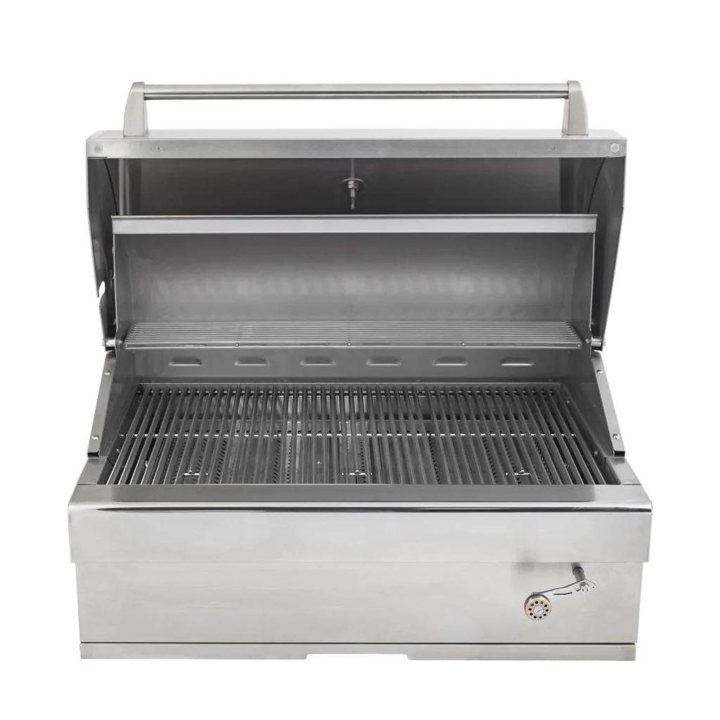 Turbo grills allow you to enjoy the luxury outdoor kitchen experience at a more economical price. The Turbo charcoal grill is designed to weather the elements with 304 stainless steel construction, ensuring years of enjoyment with proper care. This 32-inch charcoal grill offers 740 square inches of cooking space across heavy-duty stainless steel grates and a stainless steel warming rack. Precisely control and monitor grilling temperatures using the 6-inch, height-adjustable charcoal tray and a hood integrated thermometer. Cleanup is easy thanks to a slide-out ash tray. This charcoal grill is configured for built-in installation.