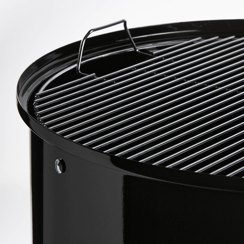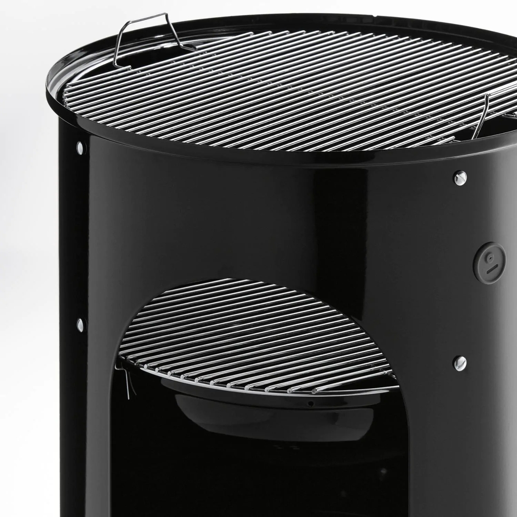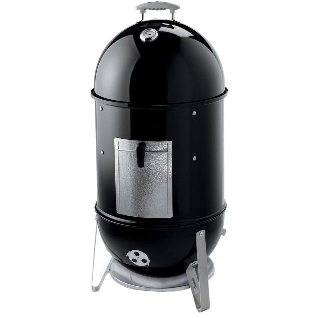 For the moistest, juiciest cuts of meat, sometimes low and slow is the way to go. The Weber Smokey Mountain Cooker features two 17-1/2 inch diameter steel-plated cooking grates ideal for smoking everything from pork to chicken to a full-sized turkey. A rust-resistant aluminum fuel door allows you to adjust or add charcoal while cooking and the adjustable airflow vent allows for controlling the temperature. The silicone thermometer probe grommet lets you monitor your food temperature without losing any heat. A porcelain-enameled water pan adds steam to the smoking process so meat stays moist and tender. The smoker is constructed of premium-grade steel coated with porcelain enamel inside and out. Also included is a cover to protect your smoker while not in use.