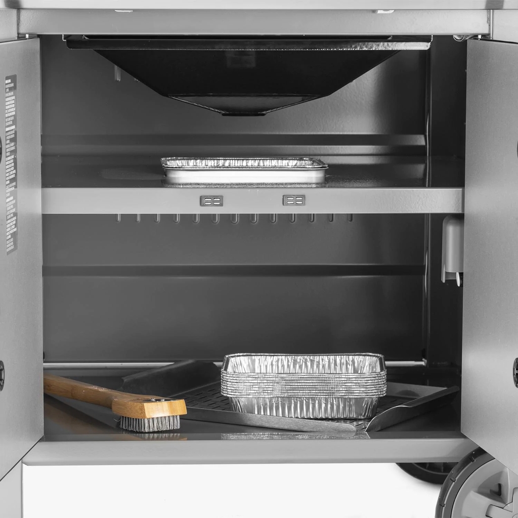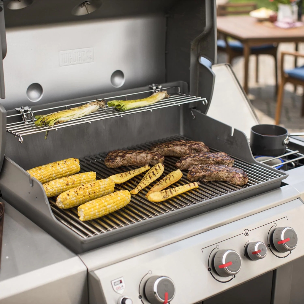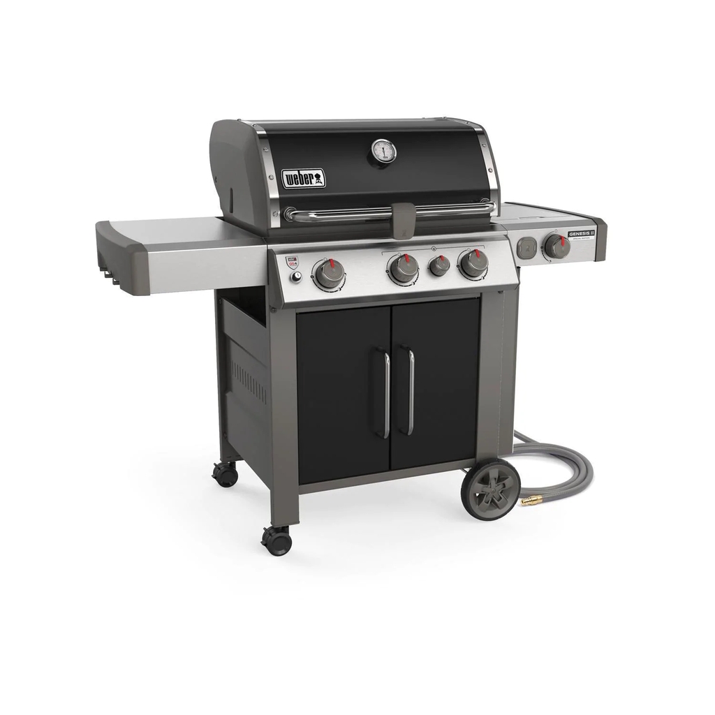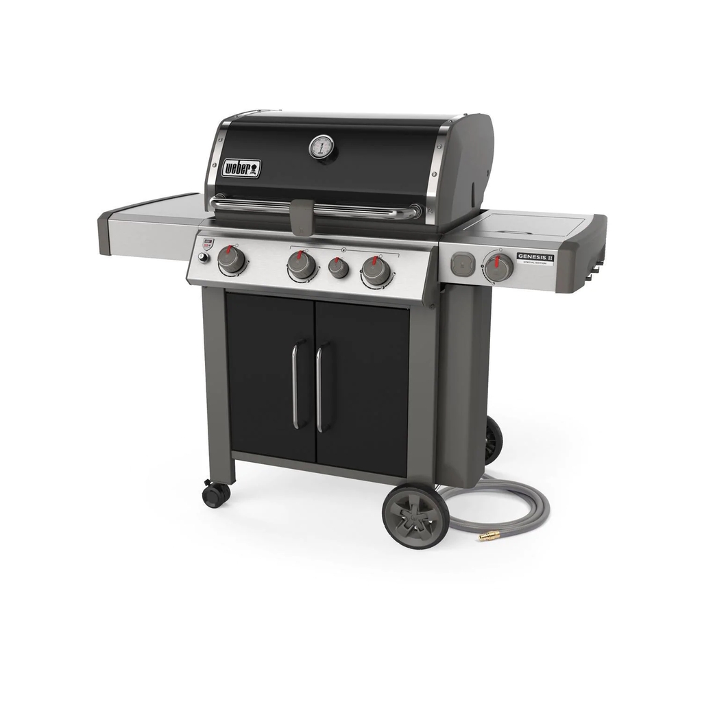 The 2019 Weber Genesis II gas grill raises the standard in backyard grilling with the GS4 high-performance grilling system, featuring continuous-spark Infinity ignition, revolutionary stainless steel high performance burners, stainless steel Flavorizer bars with flame view window and a Grease Management System. The Special Edition Weber Genesis II SE-335 features three stainless steel high-performance burners that produce 39,000 BTUs of power, a 12,000 BTU side shelf mounted side burner and a 9,000 BTU sear station burner. The Genesis II SE series gas grills come fully equipped with 9mm stainless steel rod cooking grates, stainless steel Flavorizer bars and stainless steel heat deflectors to effectively hold and distribute heat evenly over the 513 square-inches of cooking grates. The Tuck-Away warming rack provides an additional 156 square-inches for a generous 669 square-inches of total cooking area. The Genesis II grills come equipped with a Grease Management System that makes clean-up as easy as possible. The black color finish porcelain-enameled hood has a center-mounted thermometer to monitor cooking temperatures and has painted cast-aluminum end caps. This iGrill 3-ready Genesis II SE grill features a motion-activated, handle-mounted light for added visibility during night-time grilling and includes a 10-foot flexible natural gas hose. The welded tube frame, closed cart design with painted steel doors includes two shelves below the control panel and two side shelves, providing much needed prep space and two heavy-duty locking casters and two large wheels. Six convenient built-in tool hooks keep your BBQ tools nearby.