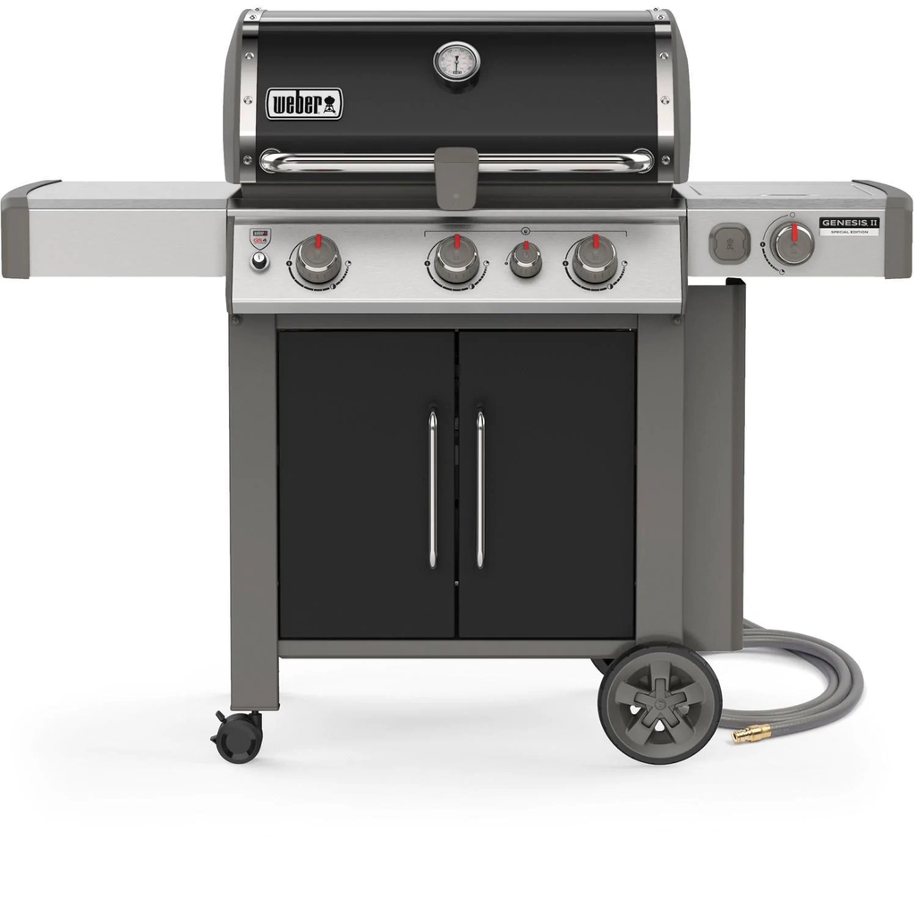 - Genesis II Special Edition grill featuring a black porcelain-enameled finish, 9mm stainless steel rod cooking grates & motion-activated handle light