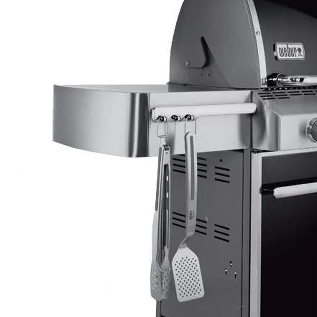 Summit Series gas BBQ grills are the crown jewels of the Weber family, with exclusive features, the highest level of performance and stunning looks. The Weber Summit S-470 is a backyard superstar that will make you say Oh. My. Grill. The stainless steel S-470 features 4 stainless steel burners that produce 48,800 BTUs and a 10,600 BTU Sear Station, each with Snap-Jet individual burner ignition to help you get the party started as quickly as possible. The Summit S series propane gas grill comes fully equipped with 9mm (3/8 inch) stainless steel rod cooking grates and stainless steel Flavorizer bars to effectively hold and distribute heat evenly over the 468 square-inch main cooking grid. The warming rack provides an additional 112 square inches for a generous 580 square inches of total cooking area. Summit grills come equipped with a stainless steel grease tray with a catch pan to make clean-up as easy as possible. The Weber S-470 also has a 12,000 BTU flush-mounted side burner that lets you multi-task while grilling, a stainless steel smoker box with a dedicated 6,800 BTU smoker burner and a 10,600 BTU infrared rotisserie rear burner. The Tuck-Away rotisserie system features a flip-up motor and separate spit rod and fork storage inside the cart. This Weber Summit grill has a painted steel frame and a front-mounted control panel with LED lighted control knobs and a backlit LED propane scale, which works in conjunction with the precision fuel gauge to let you know exactly where you stand on fuel at all times. The stainless steel shroud will withstand the elements for years to come and has a polished stainless steel handle and a center-mounted thermometer to monitor cooking temperatures. The grill cart features stainless steel doors, chrome plated cast-aluminum handles, painted side and rear panels and four heavy-duty casters (2 locking and 2 swivel). The enclosed storage area keeps your propane tank out of sight, two stainless steel side shelves with painted cast aluminum end caps provide expansive prep space and the six convenient built-in tool hooks keep your BBQ tools nearby. Light up your grill with the Grill Out handle light, which features an integrated tilt sensor that automatically turns the light on when the lid is raised and off when the lid is closed. With the Weber Summit S-470, welcome to the top-of-the-line! Please note, the grill height dimension listed in the specifications are with the grill lid open. Please note this Weber grill cannot be converted to run on a different fuel type. Be careful when selecting the fuel type desired.